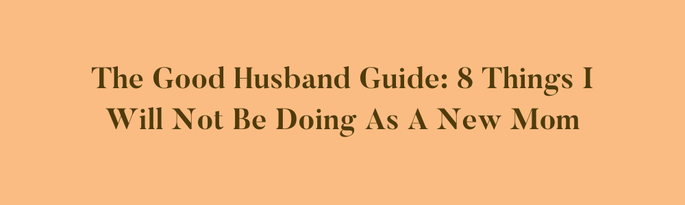 - The Good Husband Guide: 8 Things I Will Not Be Doing As A New Mom